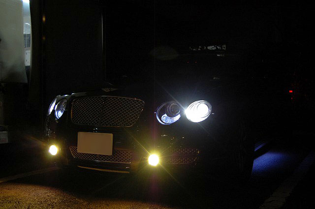 カスタムギャラリー:ベントレー コンチネンタルGT MANSORYエアロ フロントバンパーFOG HIDキット取り付け サイドスカート下LED装飾